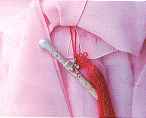 ein sehr kleines Schwert mit Troddel an einem Hanbok. Die Frauen trugen solche Schwerter, um ihre Unschuld zu schützen.